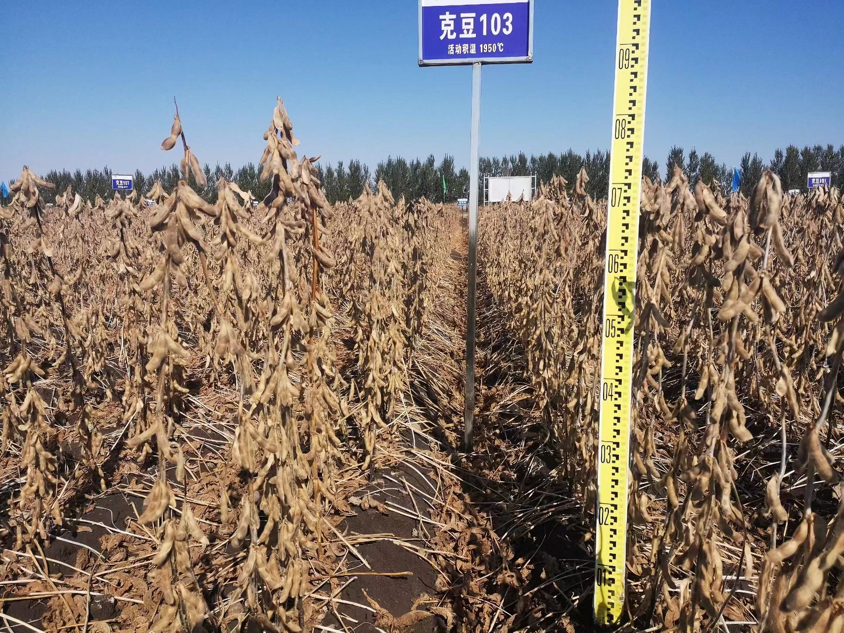 克豆103具有高产稳产、品质优良、抗病性好、适应性广等突出优点,通过配套栽培技术的实施,有利于农民增产增收、保障大豆生产安全,在黑龙江省第五积温带大豆主产区具有广阔的推广应用前景。