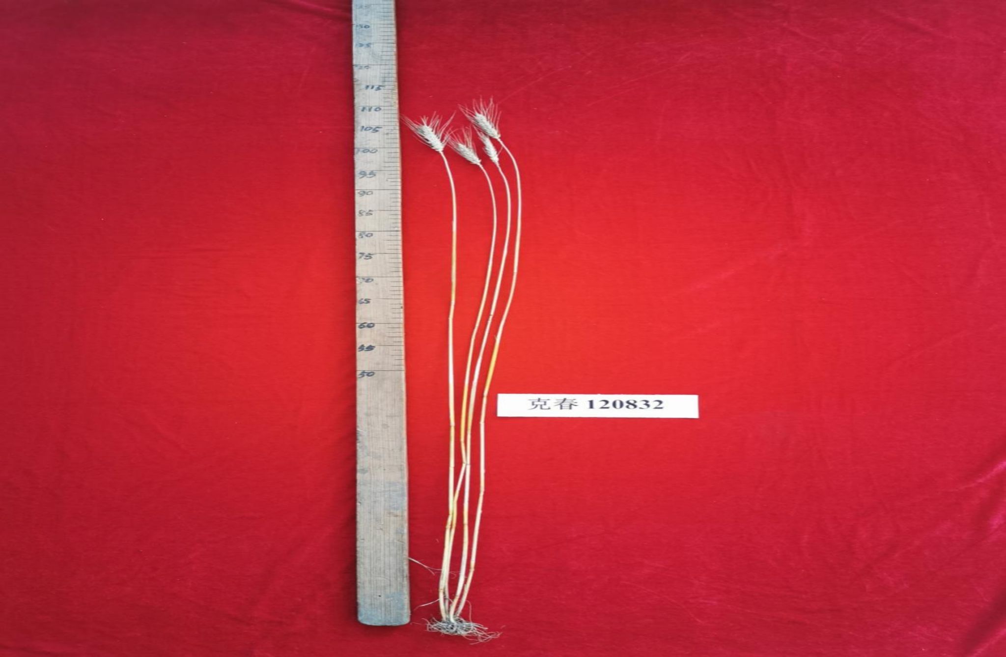 特征特性:克春120832号小麦品种属晚熟品种。在适应区出苗至成熟生育日数90天。该品种幼苗直立,株型收敛,株高103.5cm。穗长方型,有芒,紫粒,千粒重34.0g。