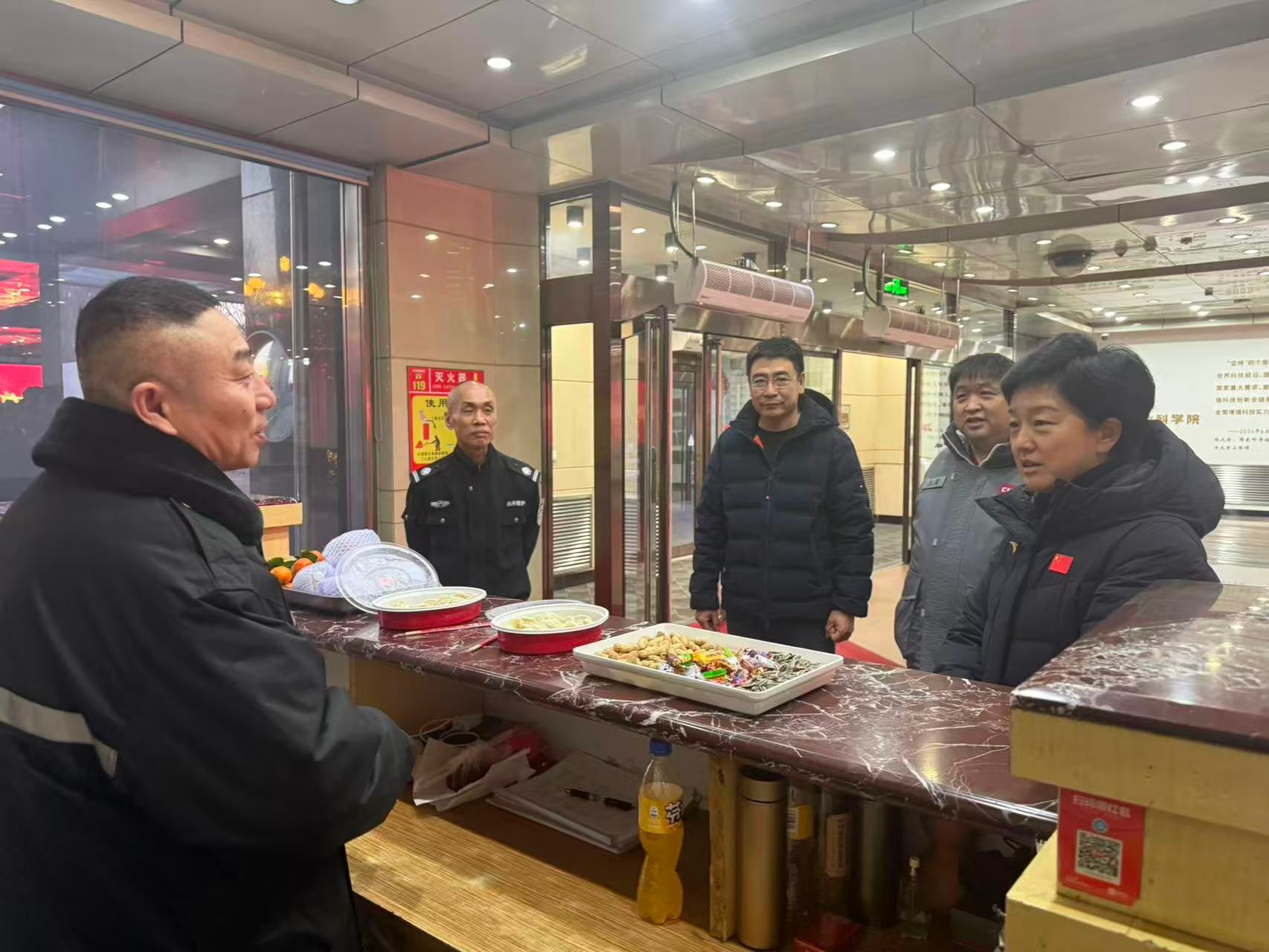 随后陈宇辉来到办公楼门岗以及干部值班室,看望慰问了仍然坚守岗位的干部职工,感谢大家在新春佳节之际舍小家为大家,坚守奉献、履职尽责,并送上了节日祝福。