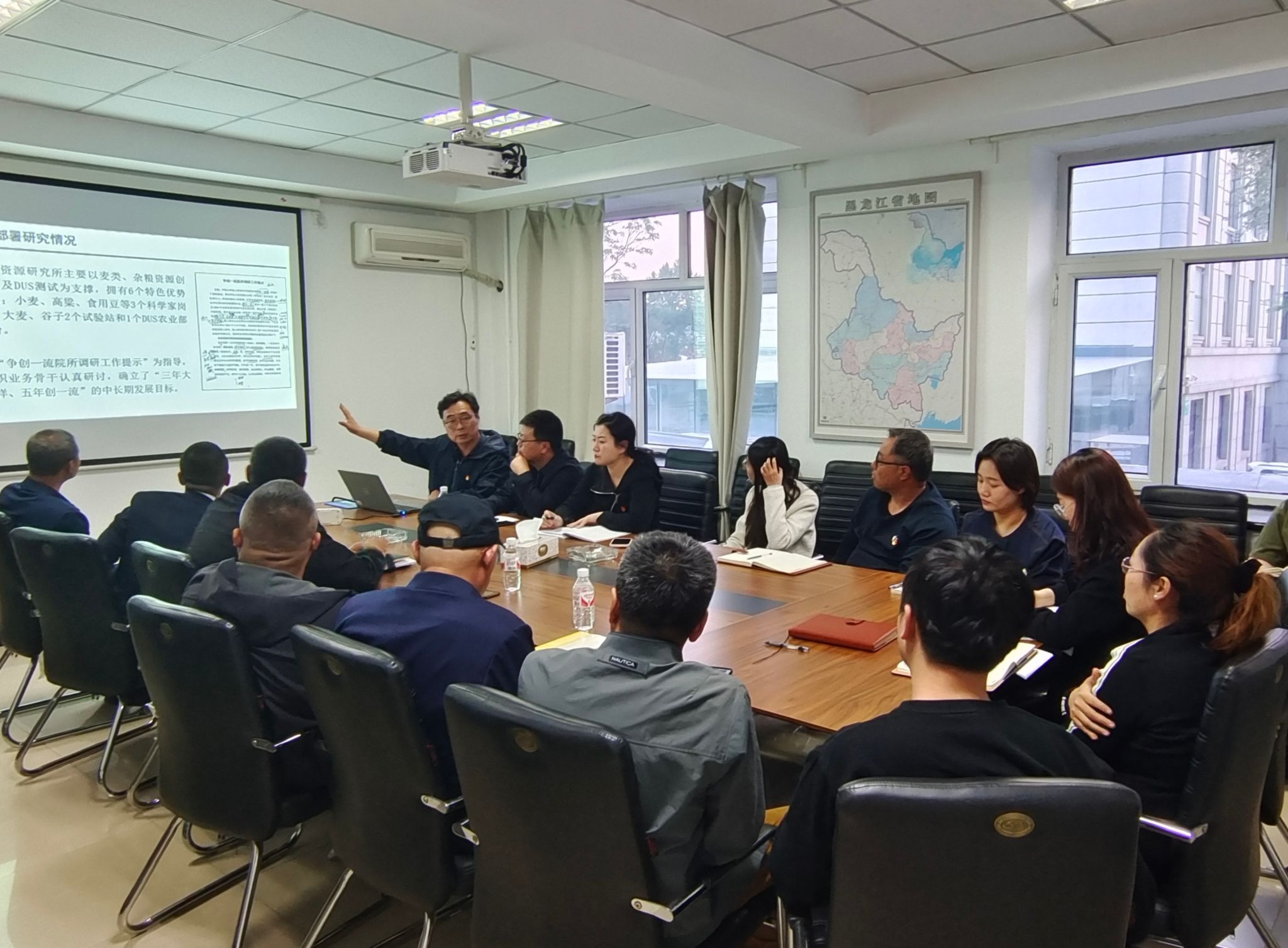 张春利所长围绕我所“兴所强院工程”规划,结合全院所处长政治能力提升和纪律培训班、年轻干部党纪研讨班学习内容,向党员干部传达相关指示精神。张春利所长指出,我们要在思想淬炼中筑牢信仰之基,认真学习领会农业领域相关文件政策,把握整体奋斗方向,为业务开展奠定基础;要拓宽视野格局,积极加强与同领域兄弟院所的学习交流,锻长板补短板,以学促干提升工作效能;要围绕“遴选70后、聚焦80后、全员90后”的人才培养目标,打造老虎型所长、狮子型主任、狼一样的人才队伍,推动全所长远发展。