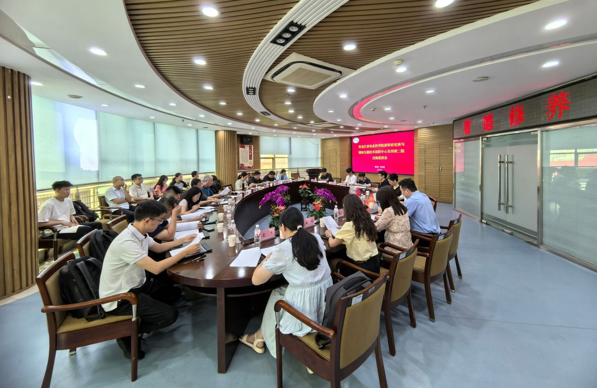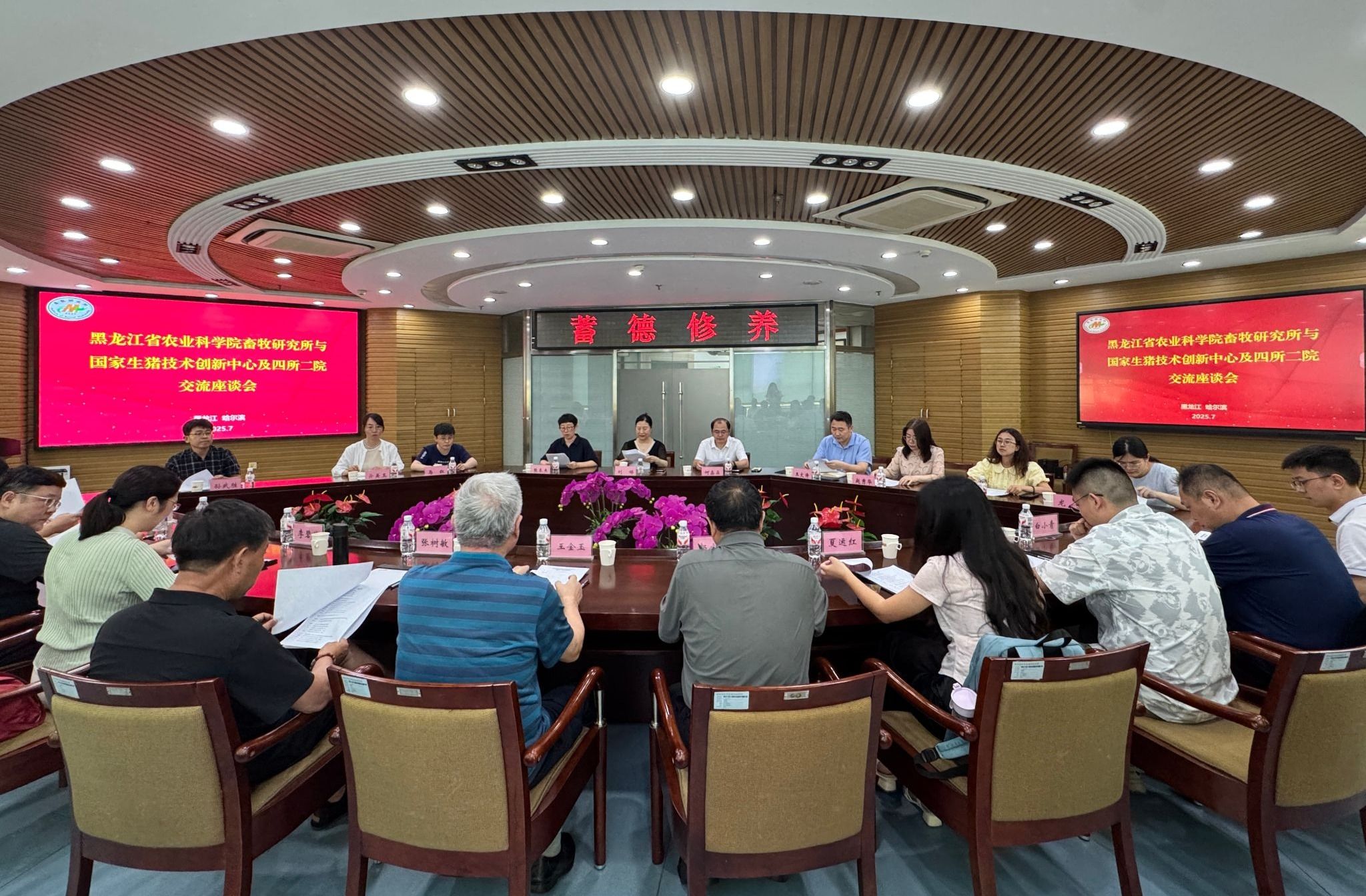 7月9日下午,由扬州大学动物科技学院王金玉教授一行四人、重庆市畜牧科学院养猪研究所郭宗义研究员一行六人、国家生猪创新中心遗传育种与繁殖研究院副院长吴平先一行三人、江苏省农业科学院畜牧研究所、国家生猪产业技术体系岗位专家李碧侠一行二人、吉林农业大学动物科技学院张树敏教授一行五人及四川省内江市农业科学院畜牧研究所夏运红所长至我所进行交流座谈。农业农村部种养结合重点实验室主任刘娣研究员、何鑫淼所长同相关领域科研人员参会,张冬杰副所长主持会议。