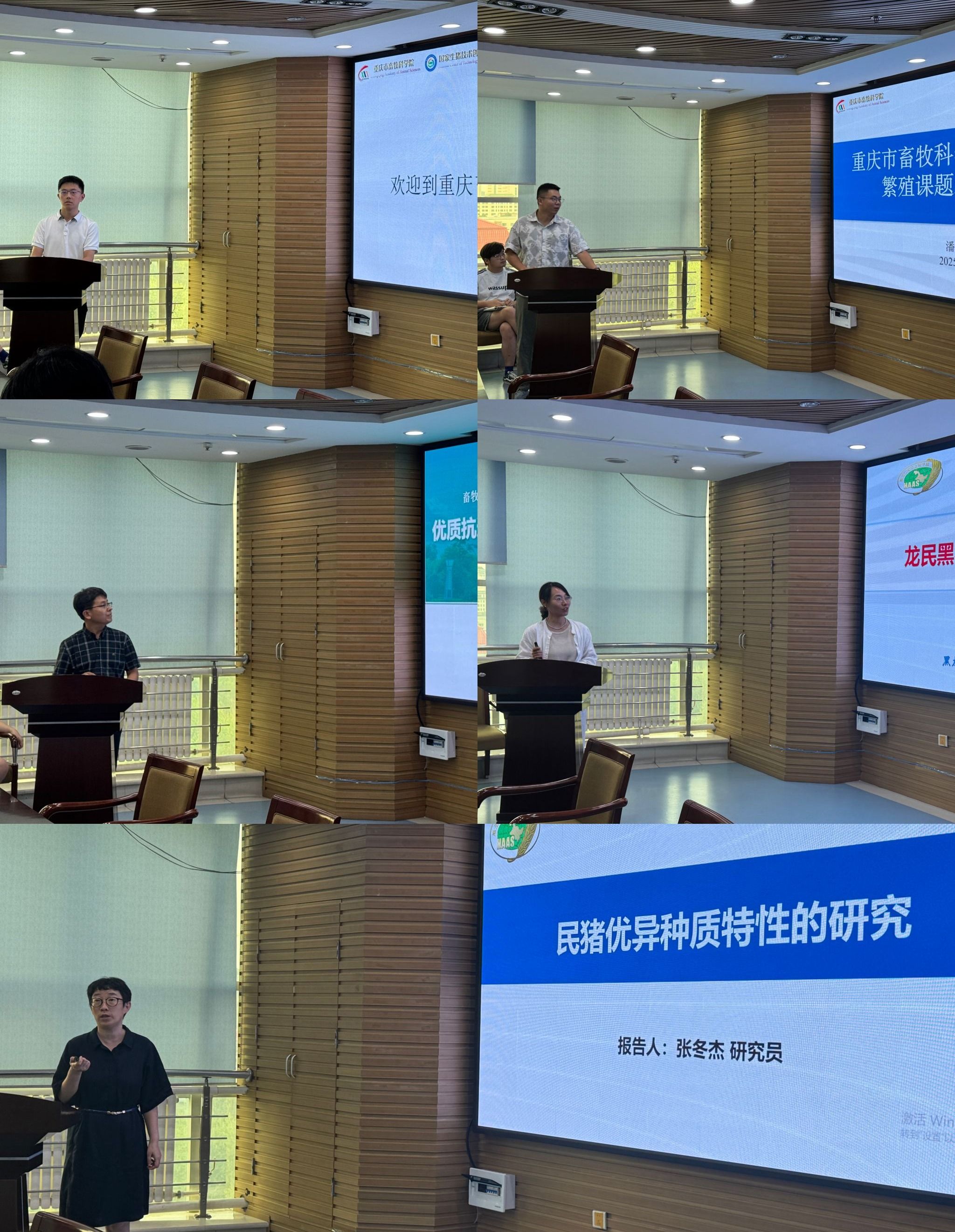 会上,国家生猪创新中心遗传育种与繁殖研究院吴平先副院长、重庆市畜牧科学院养猪研究所潘雨副书记、吉林农业大学动物科技学院孙武胜博士、我所亓美玉副研究员及张冬杰副所长分别就各自研究方向作了专题学术报告。报告涉及了多个地方猪种的选育、养殖等技术层面的开发与应用问题,也互通了不同地理区位条件下地方猪种质推广、产业精细化分割与营销等突出成果。在一问一答间,增进了友谊,收获了经验。