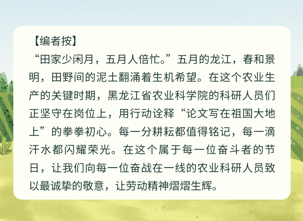 “五一”假期,韦德国际的科研工作者们以实干为笔,以汗水为墨,在平凡岗位上凝聚起创新争先的奋进力量,为保障国家粮食安全提供科技支撑,以实际行动为农业高质量发展注入强劲动能,他们奋斗的身影,成为这个广袤黑土地上最美的风景线。