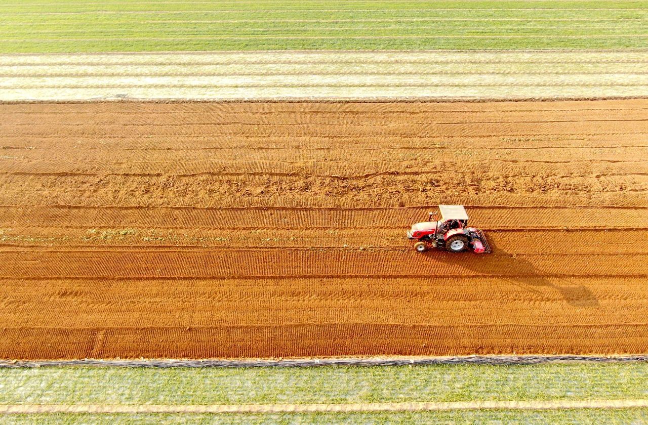近日,在安徽省亳州市蒙城县三义镇的一处农田里,当地的农事服务中心工作人员正在用无人驾驶拖拉机起垄整地,为春播玉米做好准备。