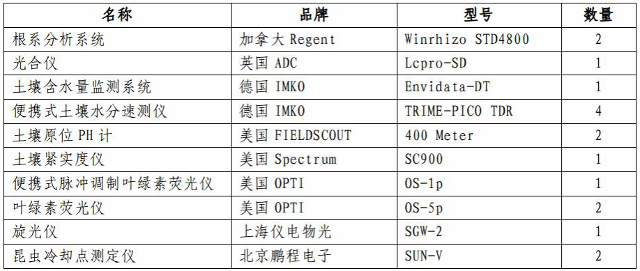 生理生态区仪器清单: