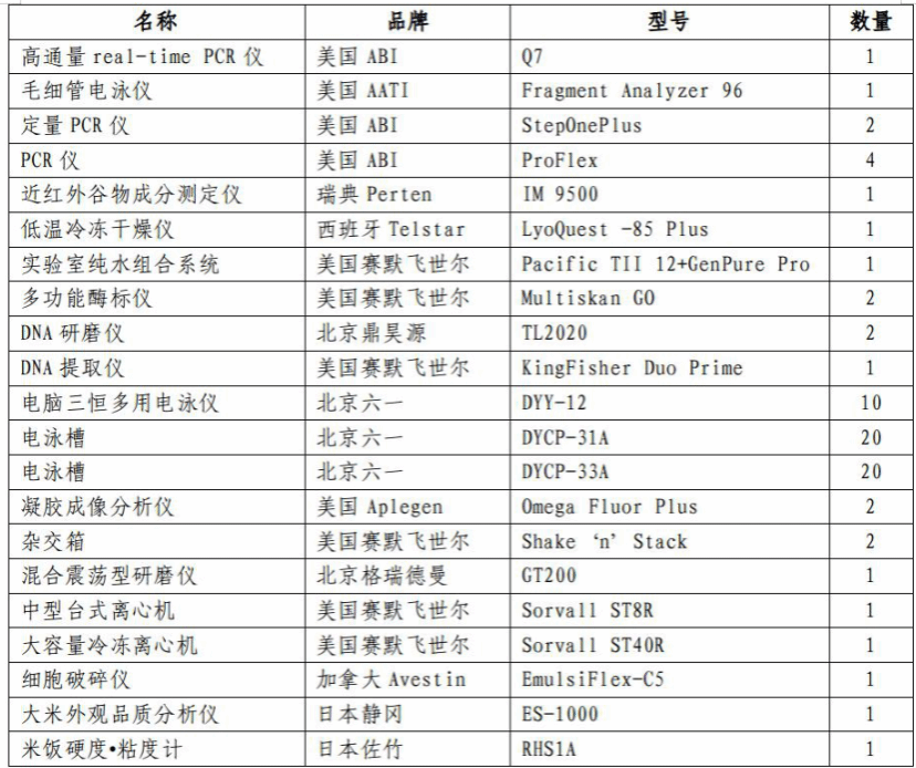 包括6间精密仪器室,分别为电镜室、氨基酸分析室、品质分析室、微生物分析室、色谱室和质谱室,可根据科研需求开展相关实验。