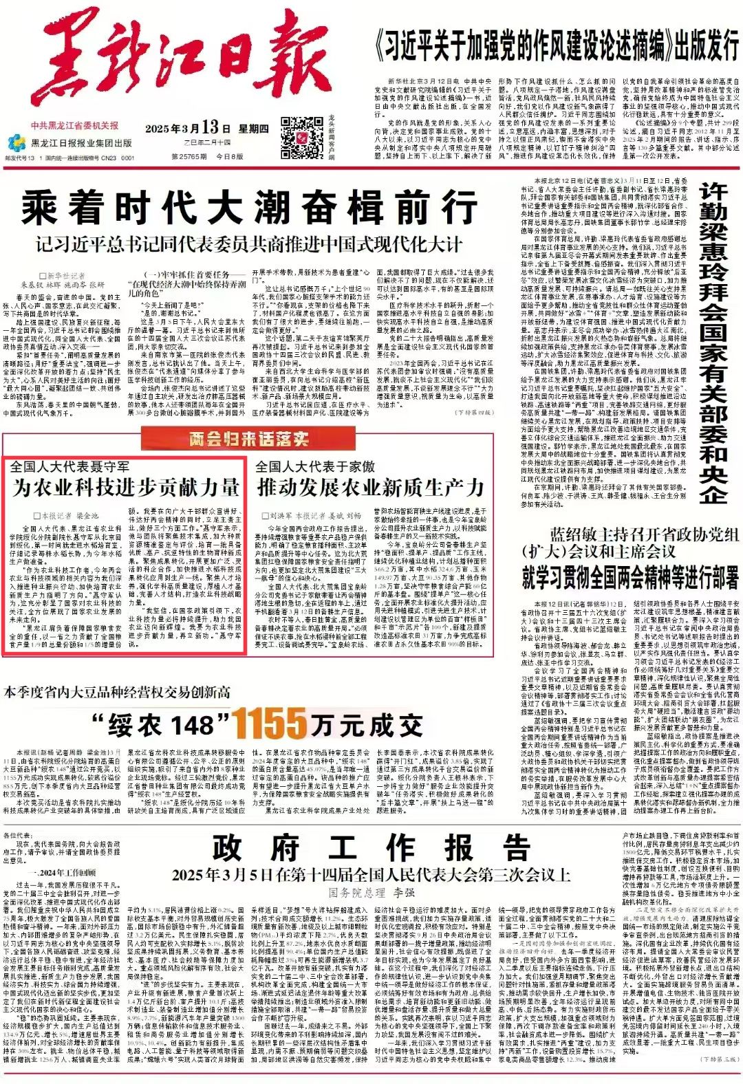 3月6日,出席十四届全国人大三次会议的黑龙江省代表团召开小组会议,审议政府工作报告,审查2024年国民经济和社会发展计划执行情况与2025年国民经济和社会发展计划草案的报告及2025年国民经济和社会发展计划草案、2024年中央和地方预算执行情况与2025年中央和地方预算草案的报告及2025年中央和地方预算草案。