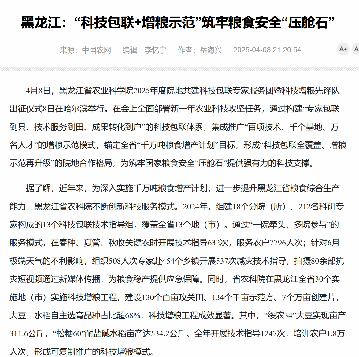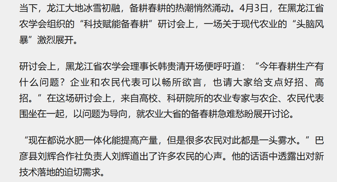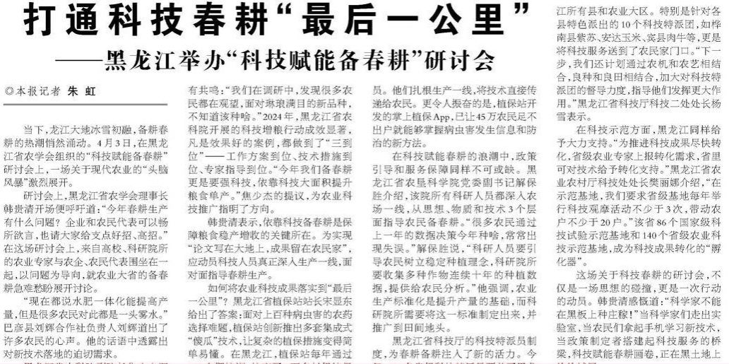黑龙江日报:韦德国际13个科技包联服务团赴各地开展春耕服务